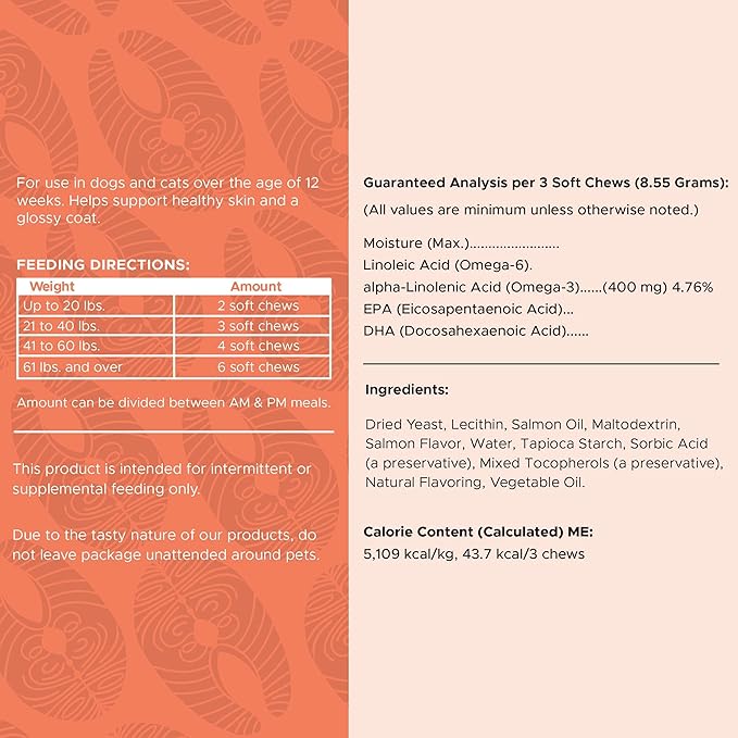 - The essential fatty acids found in the derived from salmon oil, fish oil, and flaxseeds promote and support healthy skin and fur by working at the cellular level to support the body's natural defenses