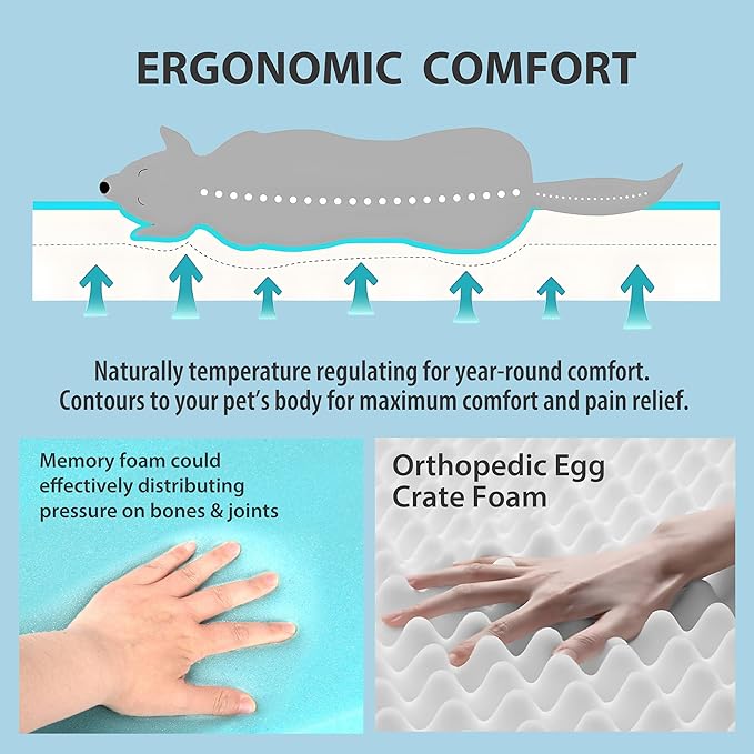 - โ Orthopedic Comfort - Designed to provide your pet with unparalleled support for a deep, dreamy night's sleep. The high-density memory foam evenly distributes weight and provides just the right amount of pressure relief.