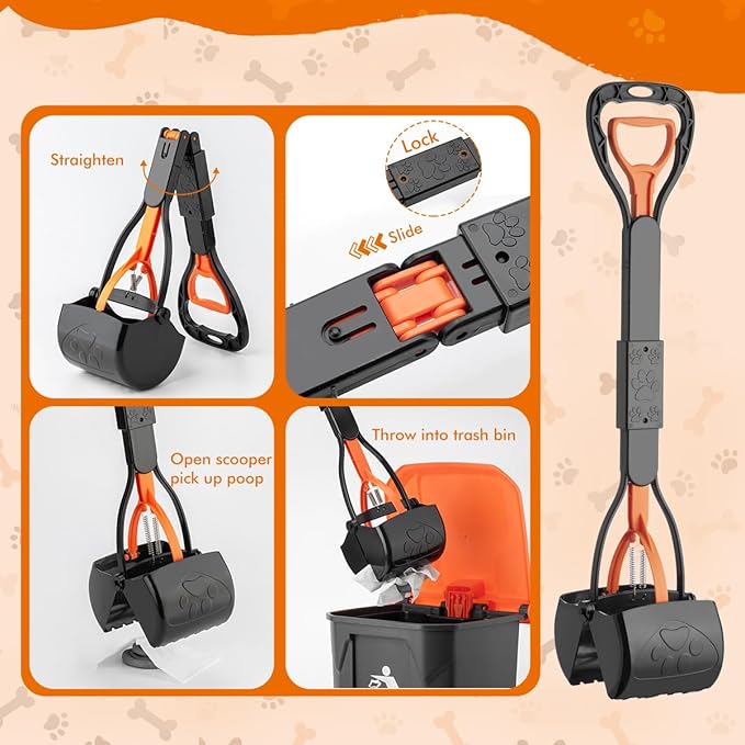 - Easy Use: Dog poop scooper for yard and a walk Received and ready to use, just push the parts together and lock into place, no tools required. WLQiu Dog Pooper Scooper Set saves your cleaning timeβA more relaxed pet-raising lifestyle for U!