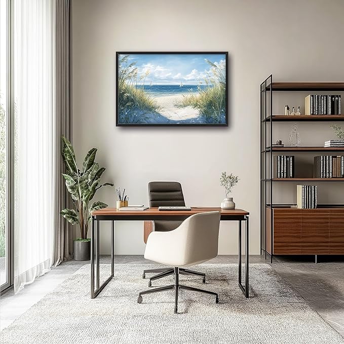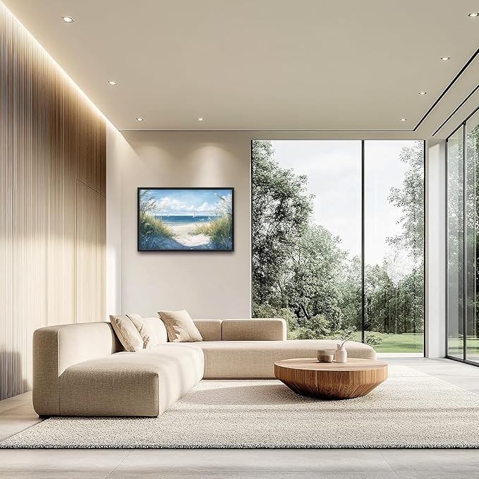 Framed Large Beach Wall Art for Living Room, Oversized Coastal Nautical Wall Decor Sailboat Canvas Seaside Pictures Modern Artwork Home Decoration for Living Room Bedroom Office 36"x24"