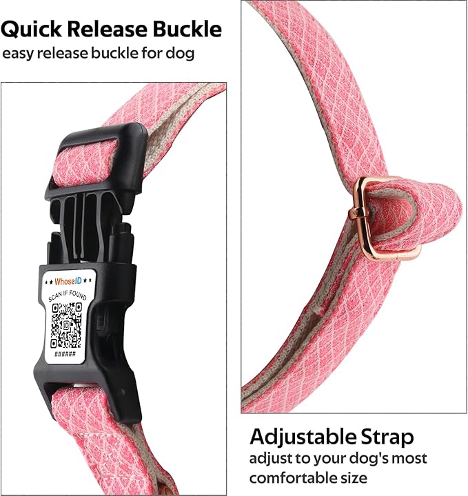 - Cute Design : WhoseID Dog Collar is both stylish and adorable with sparkling outer webbing and cotton inner webbing stitched together. Complete with gold metal hardware, this elegant dog collar is a ideal choice for your puppy
