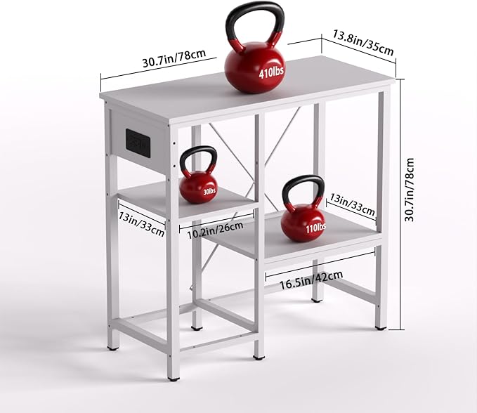 20-29 Gallon Fish Tank Stand with Power Outlet & LED Light, Metal Aquarium Stand with 3 Tier Adjustable Storage Shelves, Tank Stand for Reptile Tank, Turtle Tank, 30.7" L*13.8" W, White