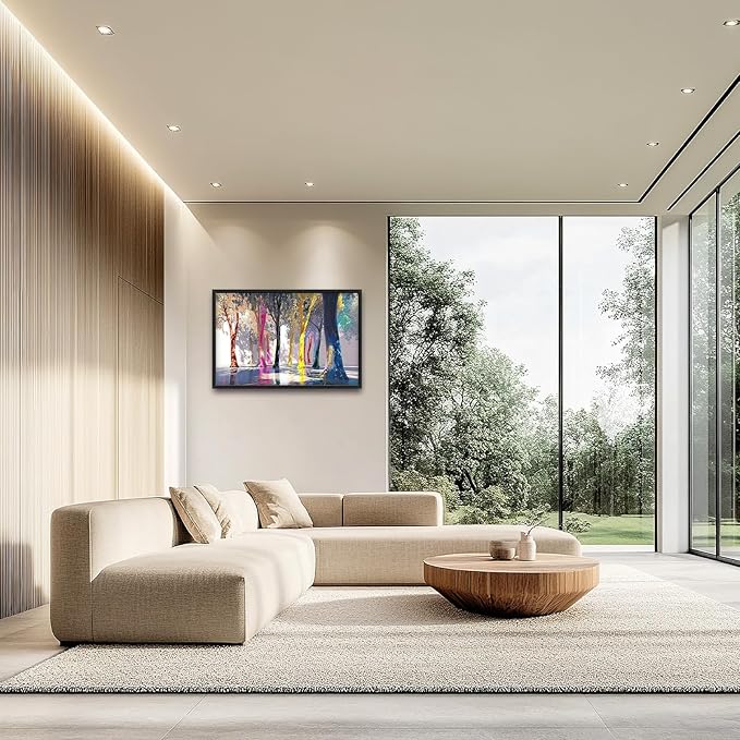 Framed Large Trees Wall Art for Living Room, Oversized Abstract Forest Wall Decor Colorful Nature Canvas Painting Modern Artwork Home Decoration for Living Room Bedroom Dining Room Office 36"x24"