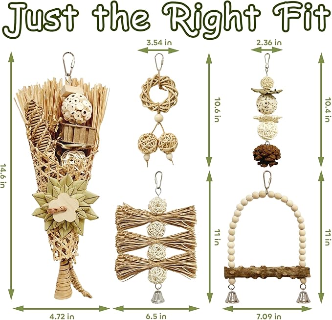 - Perfect for Small & Medium Birds: Designed for parakeets, lovebirds, conures, budgies, and more. These interactive bird toys promote natural activity like chewing and shredding while doubling as enrichment and cage decor.
