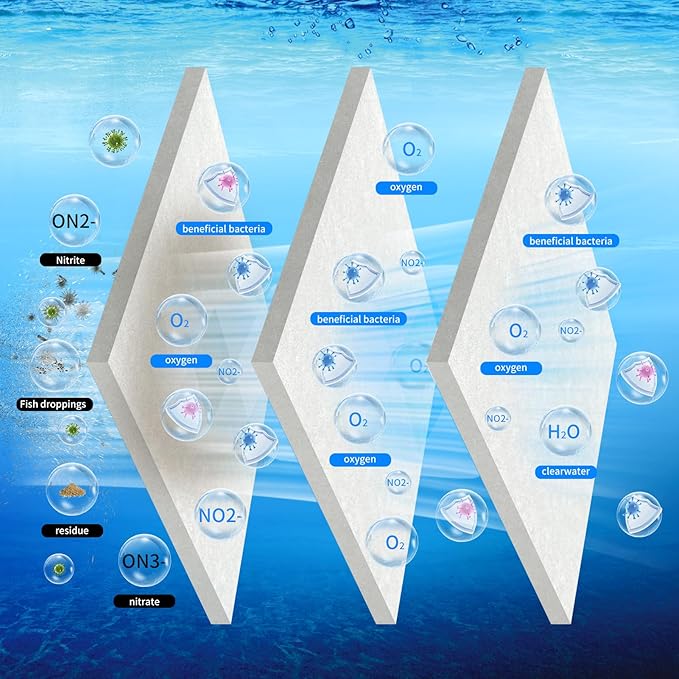- 🐟Highly Efficient Filtration: Our filter media is specially designed for aquariums or pond,captures microscopic debris, fish waste, and uneaten food, significantly improve water quality, contribute to the health of aquatic organisms, and improve the transparency and visual effect of the aquarium.