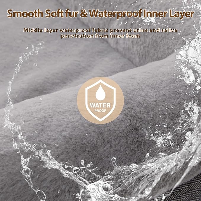 - Soft Rabbit Fur Surface:With soft rabbit fur surface, the dog sleeps on it like snuggling up to a soft rabbit, makes it easier for the dogs to sleep. The dog bed's waterproof cover with zipper will not absorb urine, water, saliva, vomit and any other liquid, and can be easily clean