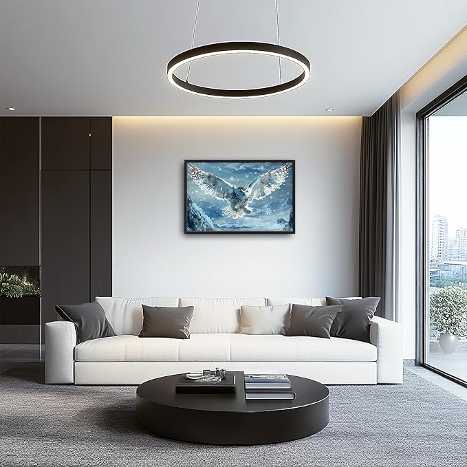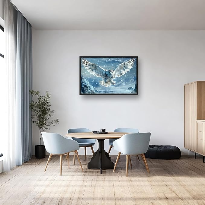 Framed Large Snowy Owl Wall Art for Living Room, Oversized Snowy Mountain Wall Decor Landscape Canvas Painting Modern Artwork Home Decoration for Living Room Bedroom Office 36"x24"