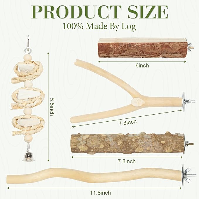- Durable & Long - Lasting:Built to withstand daily use by active birds, the sturdy wood construction ensures these perches and the hanging bridge will serve as reliable birdcage accessories for a long time.