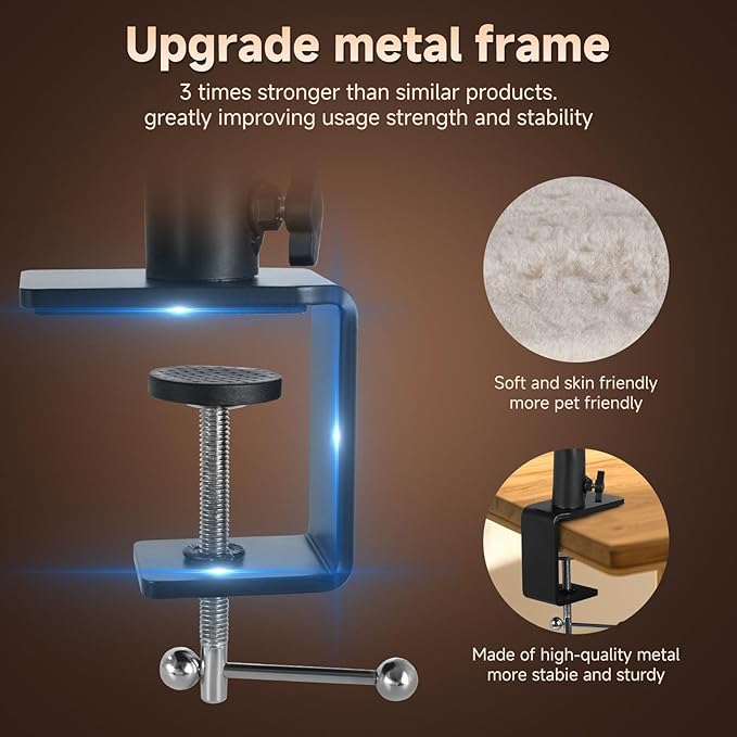 - 【Quick Installation】Install in minutes with adjustable clamps that fit desks, tables, or shelves up to 2.3in thick. modular design allows quick disassembly for storage or relocation, perfect for pet owners on the go.