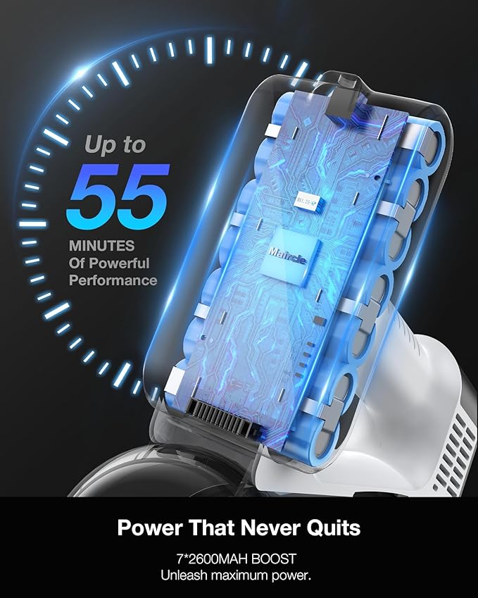 - ๐ฑ๐ฑ ๐ ๐ถ๐ป๐๐๐ฒ๐ ๐ผ๐ณ ๐๐ผ๐ป๐๐ถ๐ป๐๐ผ๐๐ ๐ฃ๐ผ๐๐ฒ๐ฟ: Clean more, charge less. This rechargeable vacuum delivers up to 55 minutes of runtimeโenough to cover up to 1500 sq ft in one go. Perfect for busy homes and multi-surface deep cleaning.