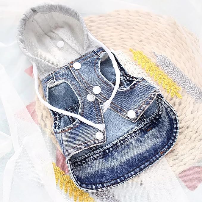 - 【Adjustable Fit & Easy Dressing】 The back features a durable D-shaped metal buckle for leash attachment, combining practicality with retro denim style. The stylish lapel collar and secure button closure make dressing your pup effortless, Fits chest 11"-20" (measurement guide included)