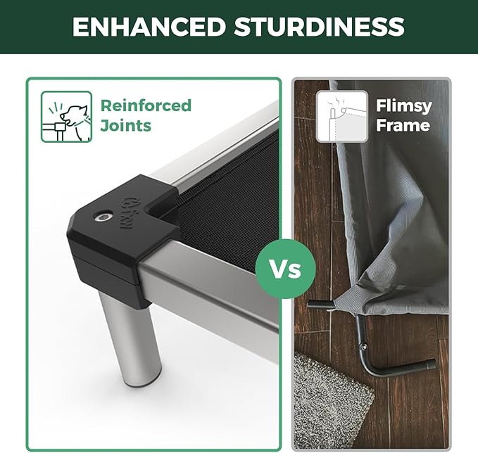 - Indestructible & Dog-Safe: Crafted with a premium aluminum alloy frame and chew-proof edges, this bed withstands aggressive chewers while keeping your pup’s gums safe and happy.