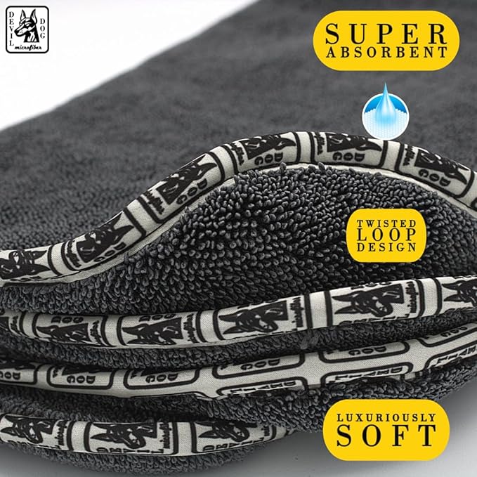 Devil Dog Premium Pet Drying Towel, Ultra-Soft, Highly Absorbent Microfiber Bath Towel for Dogs, Cats, and Other Animals - Gray, Large 24" x 35" 1200GSM 80% 20% Blend