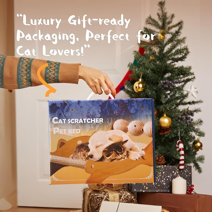 - 【2-in-1 Cat Scratcher & Hammock】Curved design cat scratching board meets the sleeping and playing needs of pets.