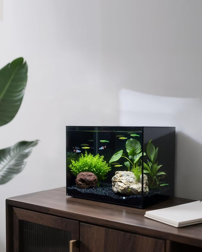 3 Gallon Clear Glass Fish Tank, Small Fish Tank Aquarium for Betta, Goldfish, Snail,Shrimp and Aquatic Planting