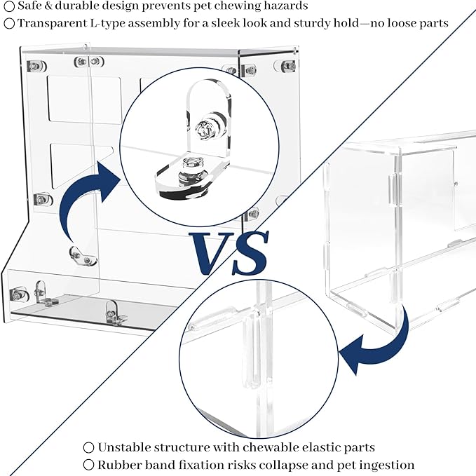- Durable Acrylic Construction: Crafted from durable acrylic material, this hay feeder is built to last, outperforming traditional wood or plastic hay racks. Its L-shaped fixing assembly securely fasten each acrylic panel, creating a sturdier and more reliable construction than other acrylic hay holders