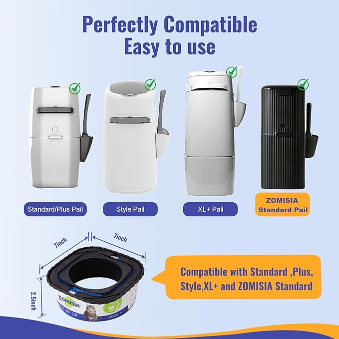 - Perfect Compatibility: Specially designed for Litter Genie systems, including Standard, Plus, Style and XL+ models. Also compatible with our Zomisia standard bins. Each 30ft refill lasts longer than any other β 4 Genie refill cartridges provide up to 72 weeks (Almost 17 months) for one cat