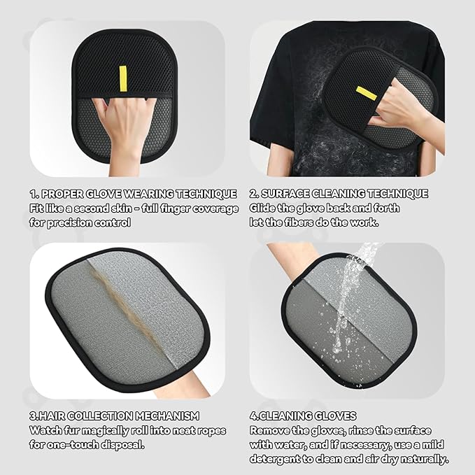 - 【Wide Range of Applications】-Our pet hair removal tool can not only be used in conjunction with flea combs, but can also function independently on clothes, sofas, carpets, car seats, etc. This cat hair removal glove is suitable for almost any fabric surface. Very suitable for pet owners or people who handle fluff and dust on various items
