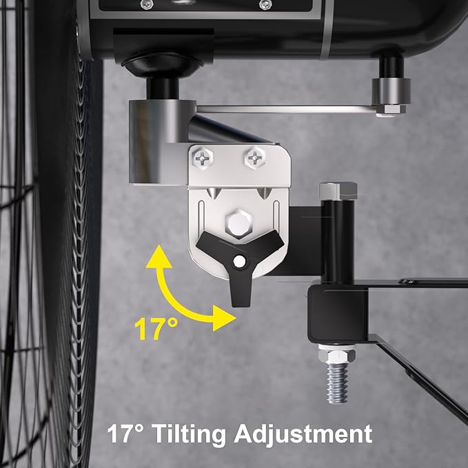 - Adjustable Tilting and Oscillation: Cool every corner with the wall mount fan's 80Β° oscillating airflow that moves back and forth. And with the option to 17Β° tilt or within it, achieve the better air placement for your comfort. So Just enjoy a cooling summer