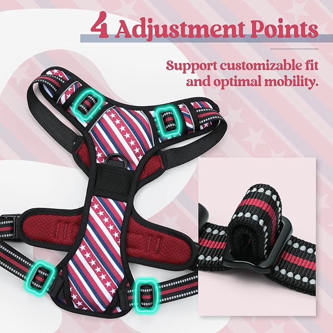 - Fully Adjustable - This adjustable harness features 4 easy adjusting straps around the body. You can use its 2 neck straps and 2 chest straps to create a perfect fit for your dog with some room of growth. No worries about slipping out or choking