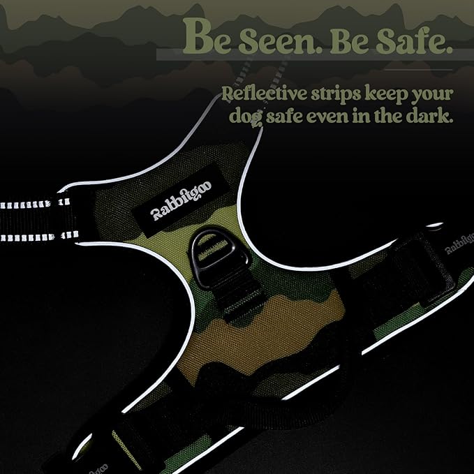rabbitgoo Dog Harness No Pull with 2 Leash Clips, Adjustable Soft Padded, Reflective Oxford No Choke Pet Vest with Easy Control Handle for Large Dogs, Green Mountain, M