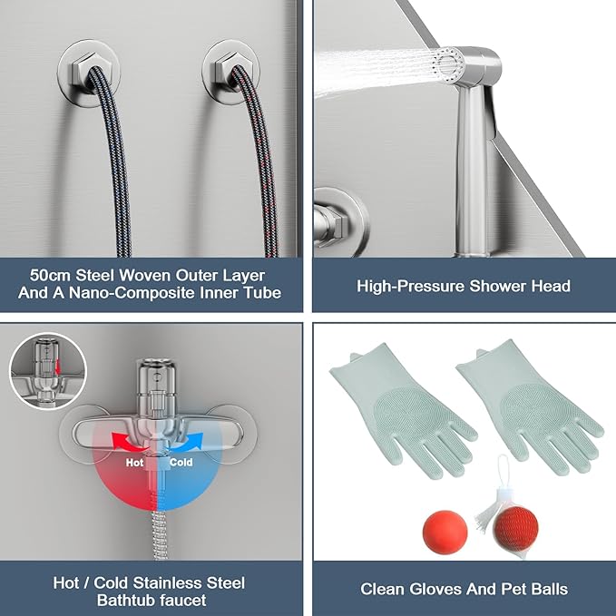 - 【Professional Grooming Salons Accessories】:Explore the world of dog grooming baths, with gentle water flow showerheads and silicone toy balls, pet feel relaxed and happy when bathing. From water temperature control to efficient dog washing gloves, dog bath tub pamper your furry friend with a spa-like experience in the comfort of your home.